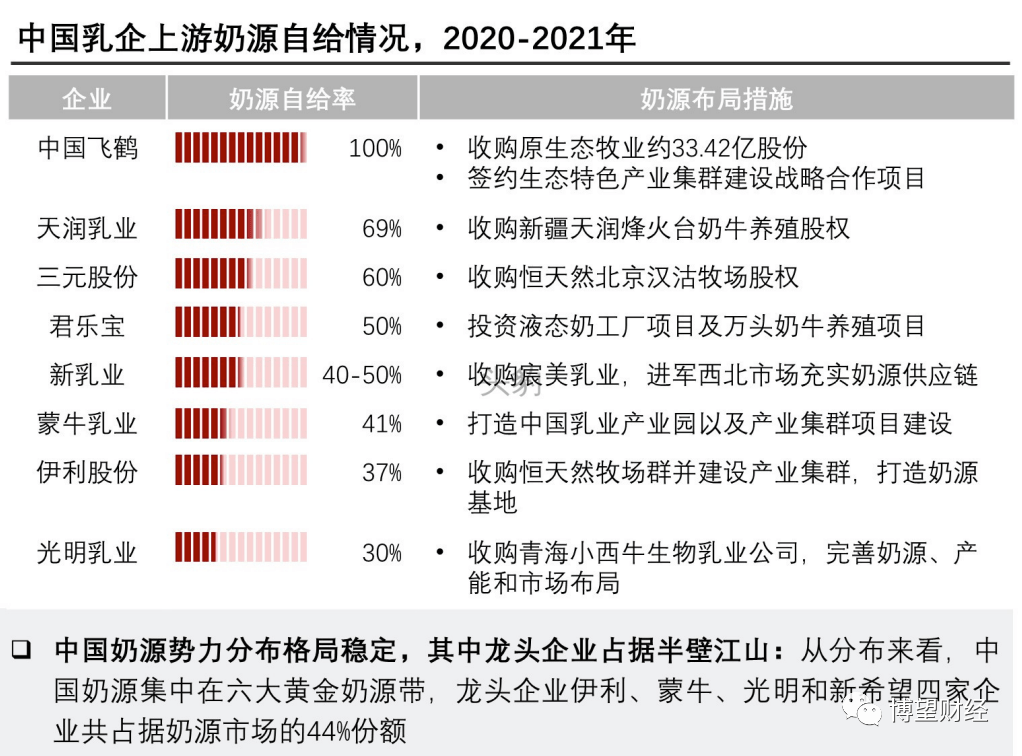 由于乳企最大的原材料就是牛羊乳,不论是出于控制成本还是提高议价能力,乳企都需要手握充沛的奶源,君乐宝在此方面存在严重的短板。
