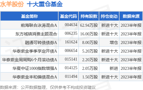 根据2023半年报公募基金重仓股数据,重仓该股的公募基金共7家,其中持有数量最多的公募基金为前海联合泳涛混合A。前海联合泳涛混合A目前规模为1.19亿元,最新净值1.6902(7月28日),较上一交易日上涨2.75%,近一年下跌18.27%。该公募基金现任基金经理为王静。