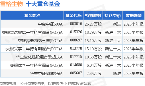 根据2023半年报公募基金重仓股数据,重仓该股的公募基金共7家,其中持有数量最多的公募基金为中金中证500A。中金中证500A目前规模为5.45亿元,最新净值1.6624(7月28日),较上一交易日上涨1.37%,近一年下跌5.76%。该公募基金现任基金经理为耿帅军。耿帅军在任的基金产品包括:中金MSCI质量A,管理时间为2020年10月22日至今,期间收益率为-17.5%;中金中证沪港深优选消费50指数A,管理时间为2020年10月22日至今,期间收益率为-12.7%;中金沪深300A,管理时间为2020年10月29日至今,期间收益率为-6.64%;