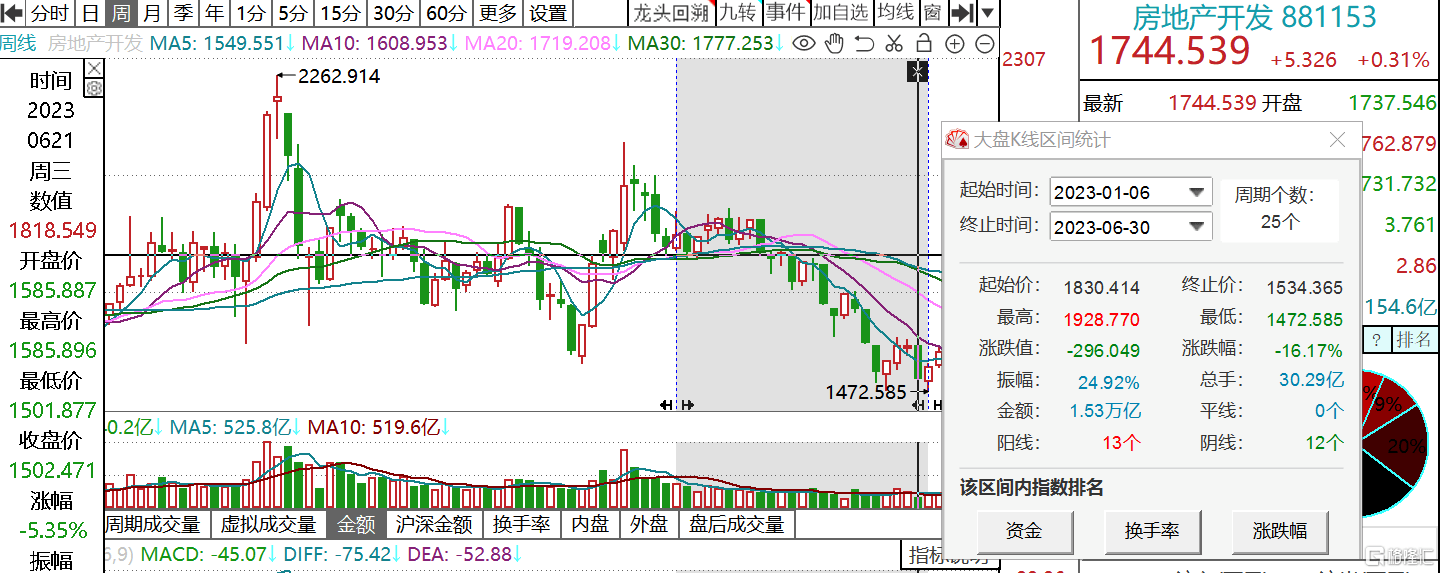 市场方面,房地产板块也十分低迷,房地产开发板块自年初至今累跌超16%。