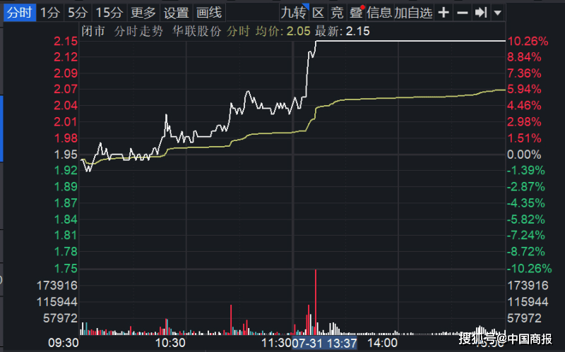 7月31日华联股份的股价涨幅为10.26%。(图片源自同花顺)
