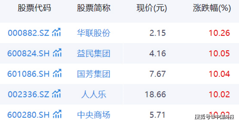 7月31日的A股零售股,除了国芳集团,还有另外4只股票涨停:华联股份、益民集团、人人乐、中央商场。