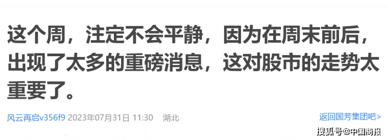 “消费板块有政策助攻!”股友“拾荒雄鹰”在帖子中分析,“周末晚上发了公告!国新办7月31日举行恢复和扩大消费的措施新闻发布会!”