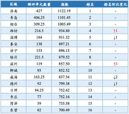 日前,2023年6月份山东16市八大行业领域区域综合INC指数发布,平均值为878.37,与上个月相比增长4.6%。数据显示,排名变动最大的是滨州,上涨3名,潍坊上升1名。