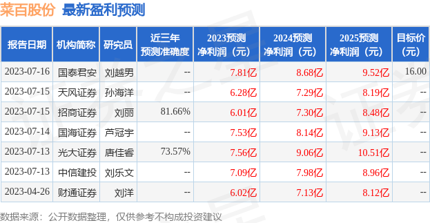 以下是详细的盈利预测信息: