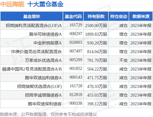 根据2023半年报公募基金重仓股数据,重仓该股的公募基金共73家,其中持有数量最多的公募基金为招商瑞利灵活配置混合(LOF)A。招商瑞利灵活配置混合(LOF)A目前规模为32.98亿元,最新净值2.404(7月28日),较上一交易日上涨1.6%,近一年上涨20.19%。该公募基金现任基金经理为陆文凯。陆文凯在任的基金产品包括:招商产业升级1年持有期混合A,管理时间为2023年5月29日至今,期间收益率为nan%。