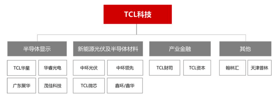 其中,TCL中环市值最高,为1176亿元,主营业务是围绕硅材料展开的新能源材料研发和生产,及半导体材料业务;其次是市值806亿元的TCL科技,TCL中环是其控股子公司,此外其主营业务还包括TCL华星为代表的半导体显示业务、以及少量的投资、金融业务。