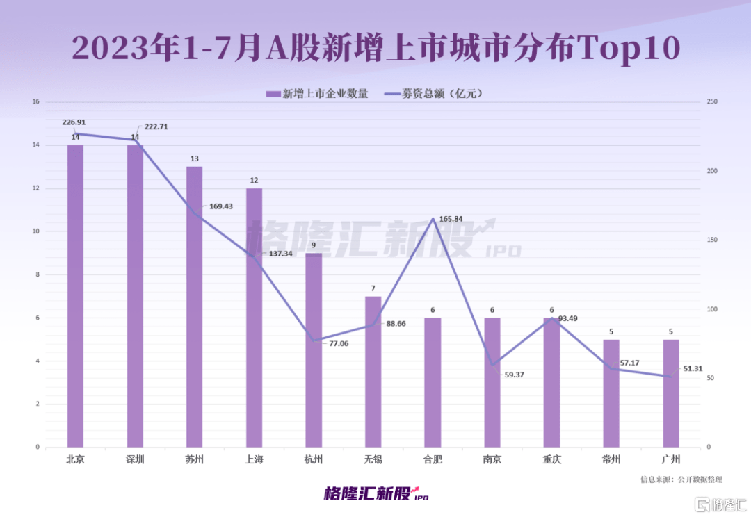 按地区划分,北京、深圳的新增上市公司数量、募资额均拔得头筹。