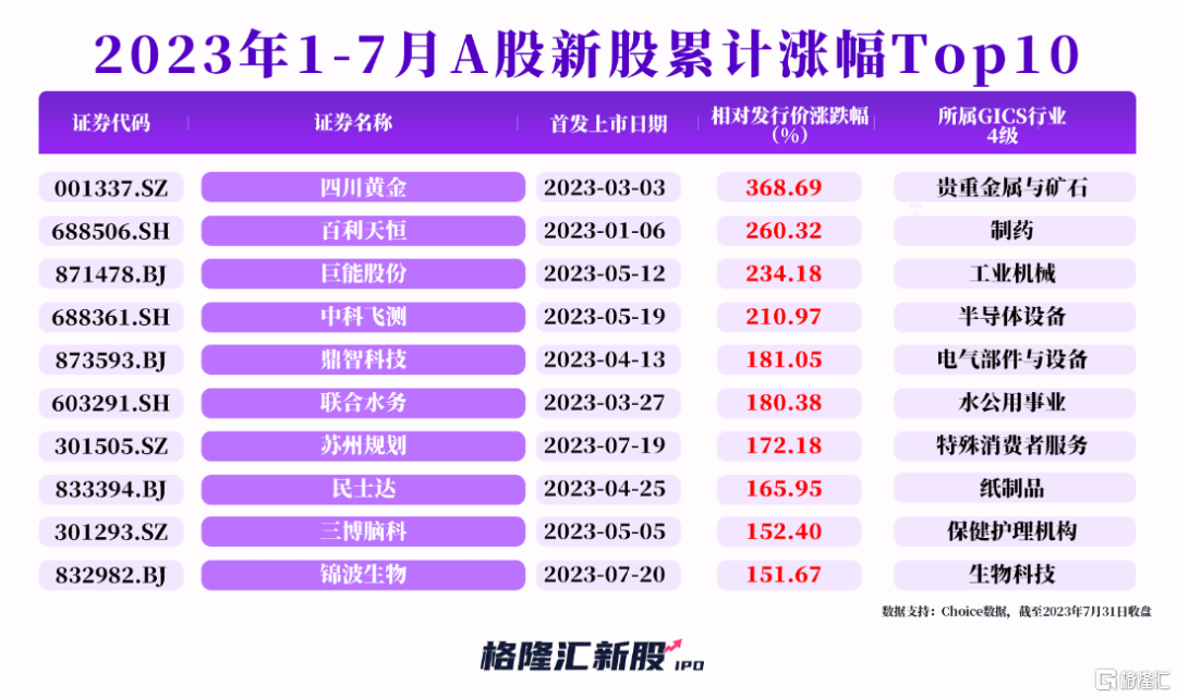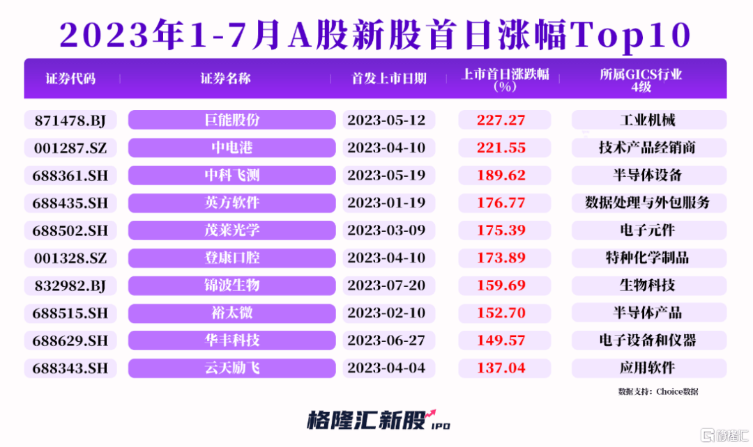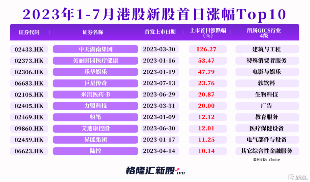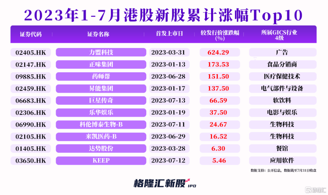 其中,7月13日上市的巨星传奇首日涨超20%,上市6个交易日股价一度实现翻倍,目前仍涨超60%。