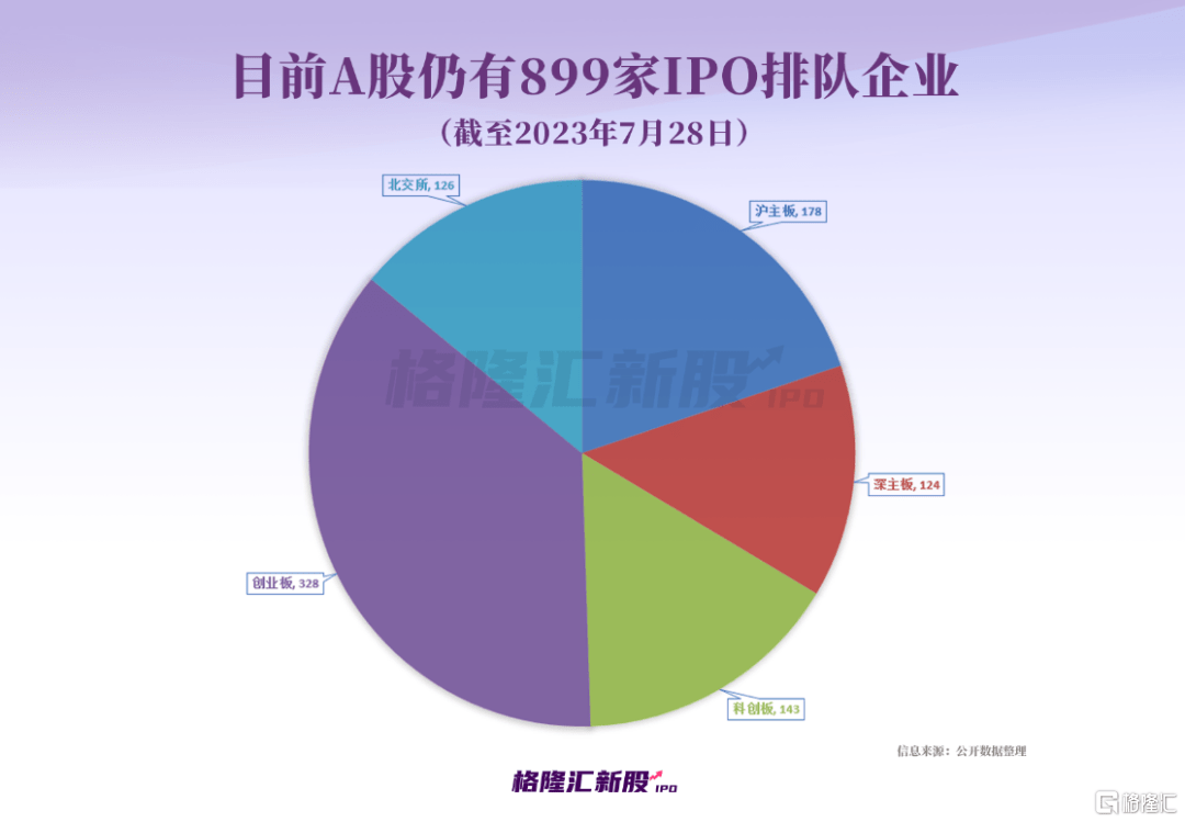 不过,尽管撤单现象增多,但IPO仍保持常态化发行的趋势并未改变。截至2023年7月28日,A股仍有899家IPO排队企业,其中创业板排队企业最多。