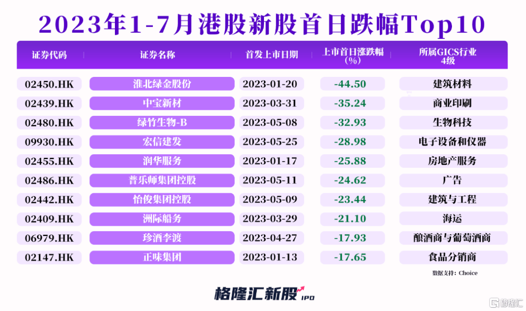 7月份港股共有6家新股上市,上市首日无一破发,不过截至7月31日收盘其中3家累计跌破发行价。