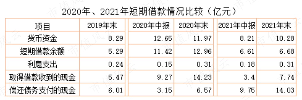 所以,风云君对该公司在2021年和2020年短期借款规模与利息支出的情况产生疑问。