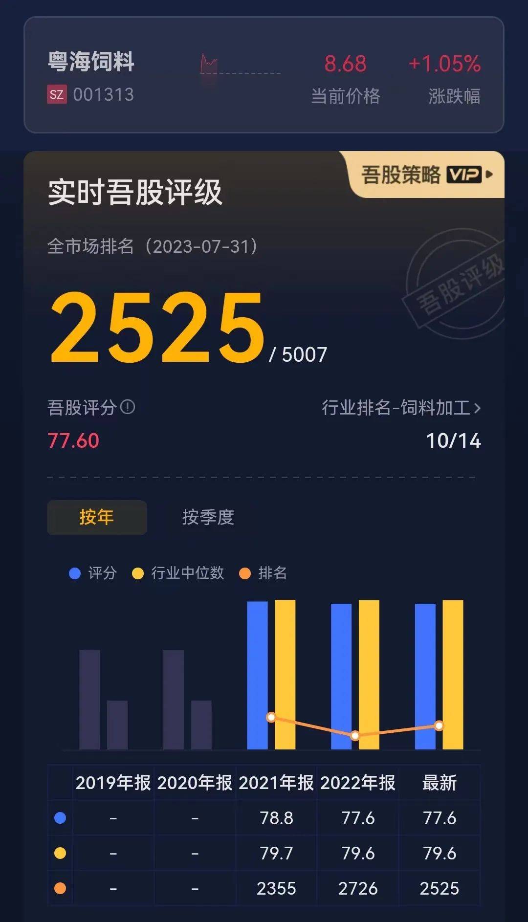 粤海饲料在市值风云APP最新排名为2525,比较靠后。