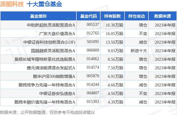 重仓派能科技的前十大基金见下表:
