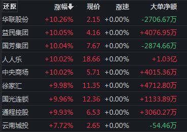同时,零售板块午后拉升,华联股份、益民集团、国芳集团、人人乐、中央商场等涨停,三江购物、步步高、南宁百货等跟涨。