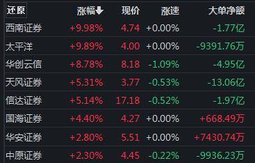 券商股冲高回落,天风证券、太平洋、华创云信等一度涨停,首创证券、信达证券、国海证券等跟涨。