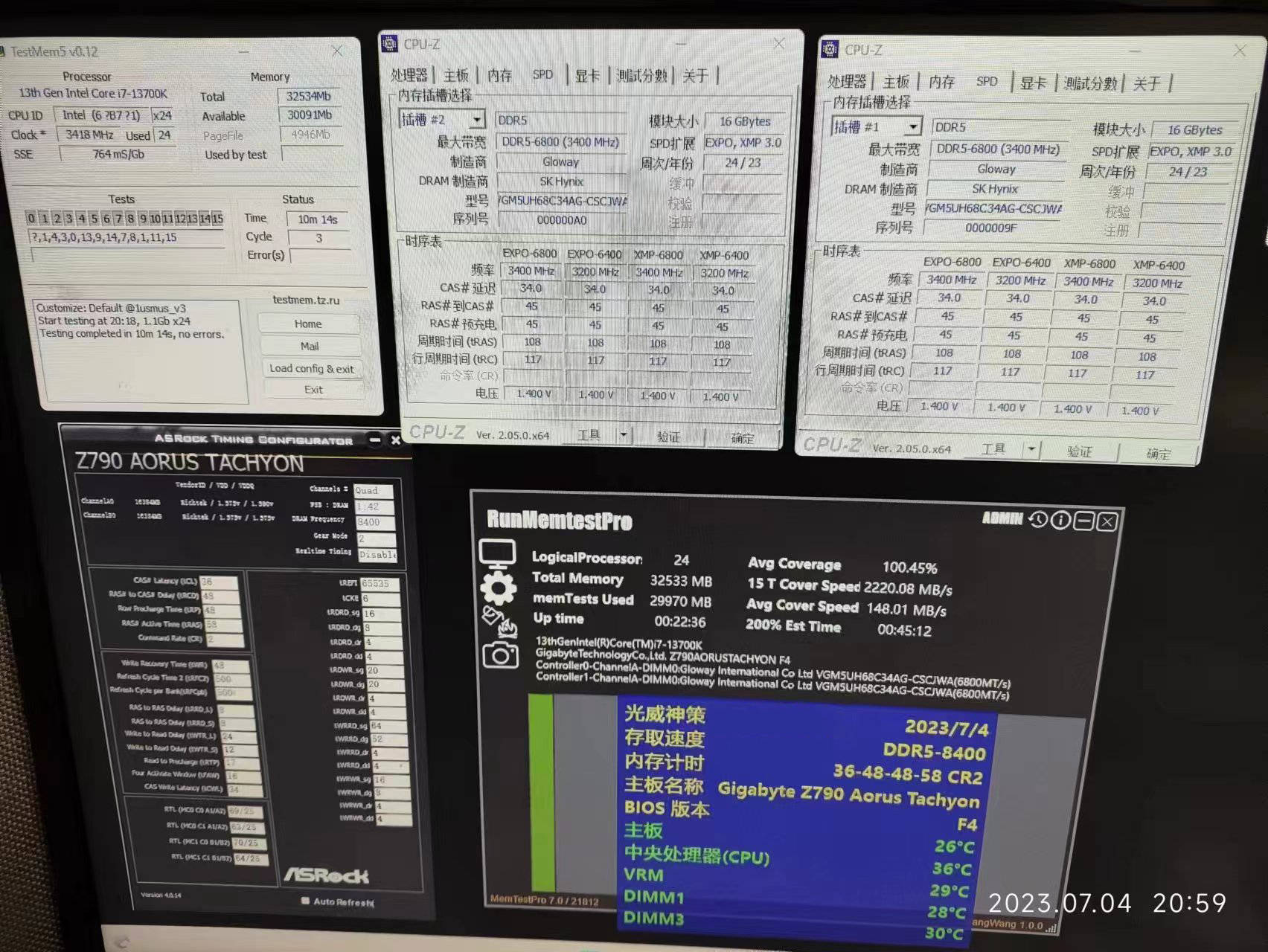 采用的是海力士A-Die的颗粒,拥有不俗的超频空间,搭配i7 13600k和Z790主板,优化后我能超到7600MHz,不知道大家能超多少,欢迎拍砖。