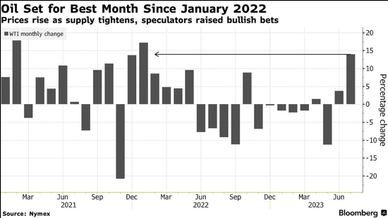 图:油价有望录得2022年1月以来最佳单月表现