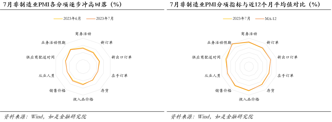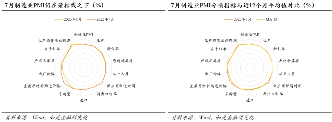 事件:根据国家统计局今天(7月31日)披露的数据,7月制造业PMI为49.3%,较上月增加0.3pct,仍低于50%荣枯线。非制造业PMI为51.5%,比上月下降1.7pcts,略高于荣枯线。