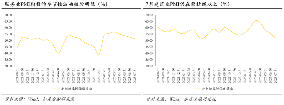 非制造业PMI边际上出现回落。对于服务业,7月非制造业PMI服务业指数为51.5%,仍然位于扩张区间,但较上月52.8%回落了1.3pct,景气度不如往年7月,并未展现“暑期行情”。对于建筑业,本月的PMI建筑业指数为51.2%,结合其他数据看我们认为是财政发力从一定程度上带动了建筑业景气度。