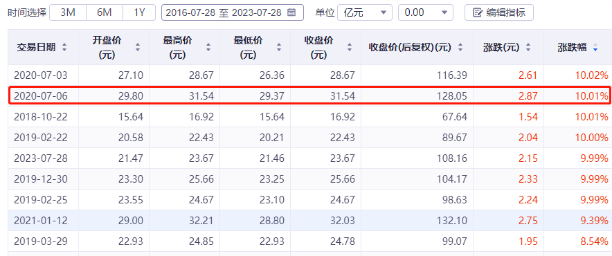 最近一次的中信证券涨停是在2020年7月6日,2020年7月3日也涨停了。