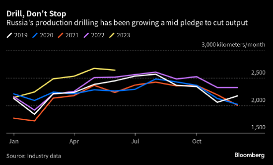 尽管克里姆林宫下令俄罗斯石油企业在最初数月减产50万桶/天,以报复西方就俄乌战争所实施的制裁,随后俄罗斯与OPEC+协调达成了直至2024年底的减产计划,但俄罗斯石油企业加快了钻探步伐。
