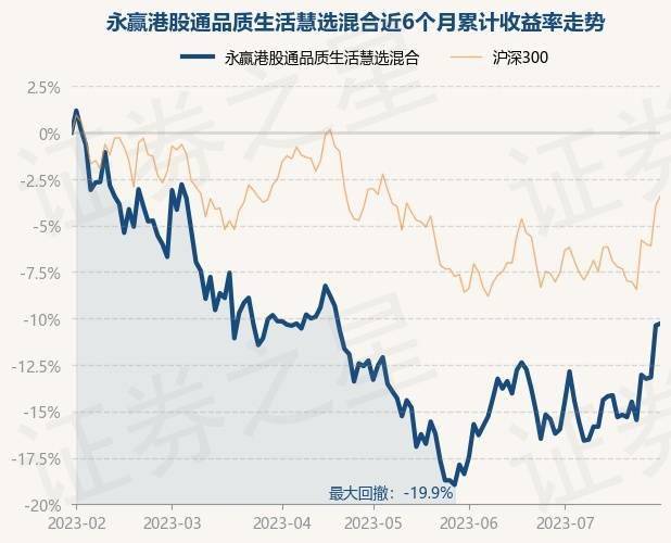 7月31日,永赢港股通品质生活慧选混合最新单位净值为0.6946元,累计净值为0.6946元,较前一交易日上涨0.13%。历史数据显示该基金近1个月上涨6.8%,近3个月上涨2.31%,近6个月下跌10.28%,近1年下跌1.55%。该基金近6个月的累计收益率走势如下图: