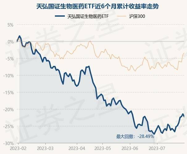 7月31日,天弘国证生物医药ETF最新单位净值为0.4924元,累计净值为0.4924元,较前一交易日下跌0.99%。历史数据显示该基金近1个月上涨5.82%,近3个月下跌7.82%,近6个月下跌22.19%,近1年下跌22.99%。该基金近6个月的累计收益率走势如下图: