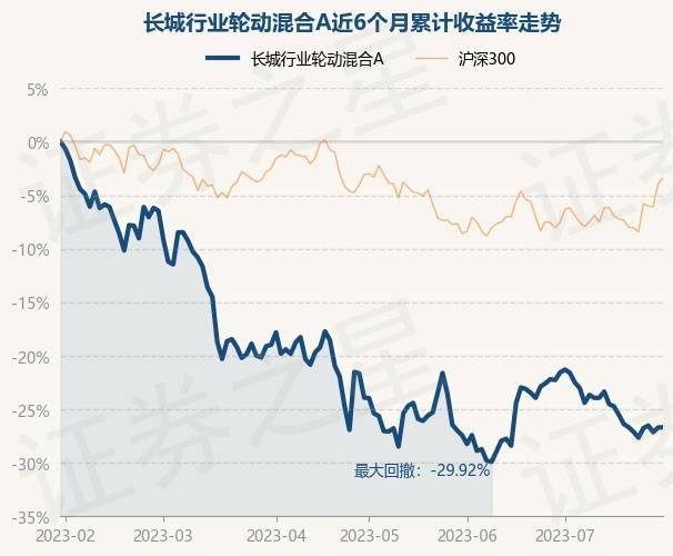 7月31日,长城行业轮动混合A最新单位净值为1.8401元,累计净值为1.8401元,较前一交易日上涨0.04%。历史数据显示该基金近1个月下跌6.53%,近3个月下跌3.61%,近6个月下跌26.7%,近1年下跌29.74%。该基金近6个月的累计收益率走势如下图: