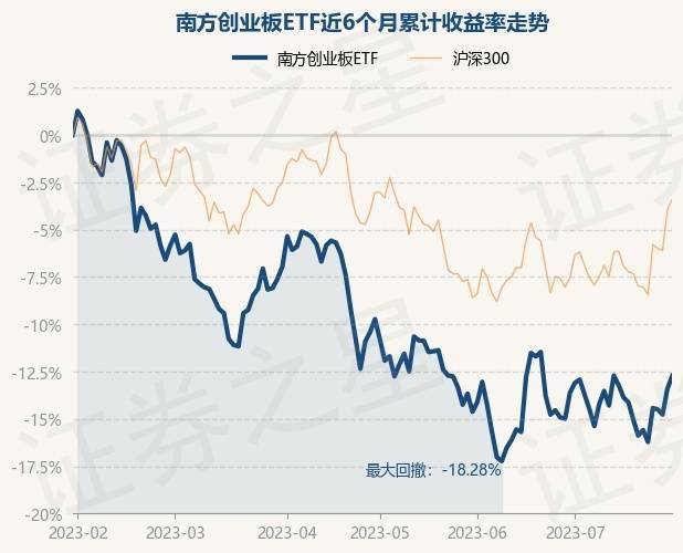7月31日,南方创业板ETF最新单位净值为2.405元,累计净值为1.1818元,较前一交易日上涨0.77%。历史数据显示该基金近1个月上涨1.03%,近3个月下跌3.34%,近6个月下跌12.74%,近1年下跌15.63%。该基金近6个月的累计收益率走势如下图: