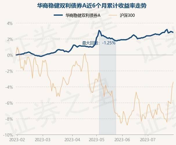 7月31日,华商稳健双利债券A最新单位净值为1.663元,累计净值为1.998元,较前一交易日下跌0.06%。历史数据显示该基金近1个月上涨0.42%,近3个月上涨1.46%,近6个月上涨2.84%,近1年上涨1.71%。该基金近6个月的累计收益率走势如下图: