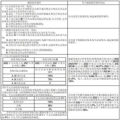 2、根据公司《2022年限制性股票激励计划(草案)》《2022年限制性股票激励计划实施考核管理办法》的相关规定,首次授予部分7名激励对象2022年个人综合考核结果为“合格”,个人层面可解除限售比例为80%;4名激励对象2022年个人综合考核结果为“不合格”,个人层面可解除限售比例为0%。需回购注销上述人员本期不得解除限售的限制性股票合计3.165万股。