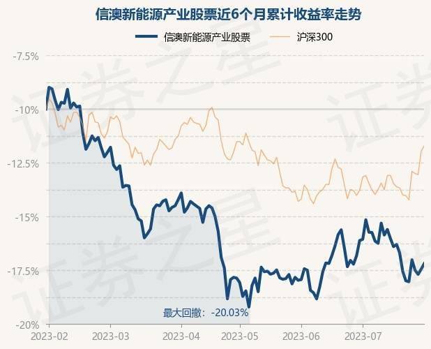 7月31日,信澳新能源产业股票最新单位净值为3.64元,累计净值为3.702元,较前一交易日上涨0.61%。历史数据显示该基金近1个月下跌2.44%,近3个月上涨1.62%,近6个月下跌14.35%,近1年下跌25.77%。该基金近6个月的累计收益率走势如下图: