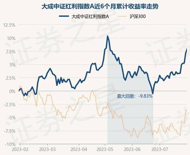 7月31日,大成中证红利指数A最新单位净值为2.347元,累计净值为2.503元,较前一交易日上涨0.73%。历史数据显示该基金近1个月上涨5.82%,近3个月上涨1.91%,近6个月上涨7.86%,近1年上涨10.14%。该基金近6个月的累计收益率走势如下图: