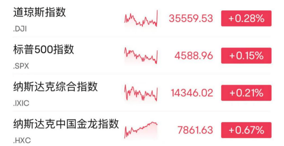 当地时间7月31日,美股三大股指小幅收涨,截至收盘,道指涨0.28%,报35559.53点;标普500指数涨0.15%,报4588.96点;纳指涨0.21%,报14346.02点。