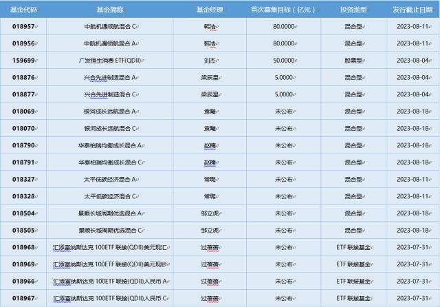 三、7月31日新发基金一览(不包含传统封闭式基金)
