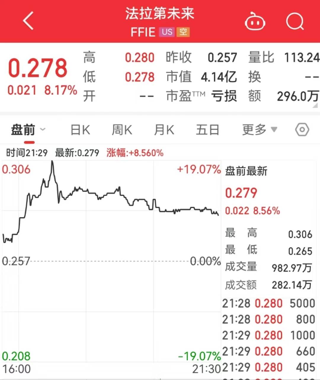 当地时间7月31日美股开盘,法拉第未来股价大涨8.17%,报0.278美元/股。