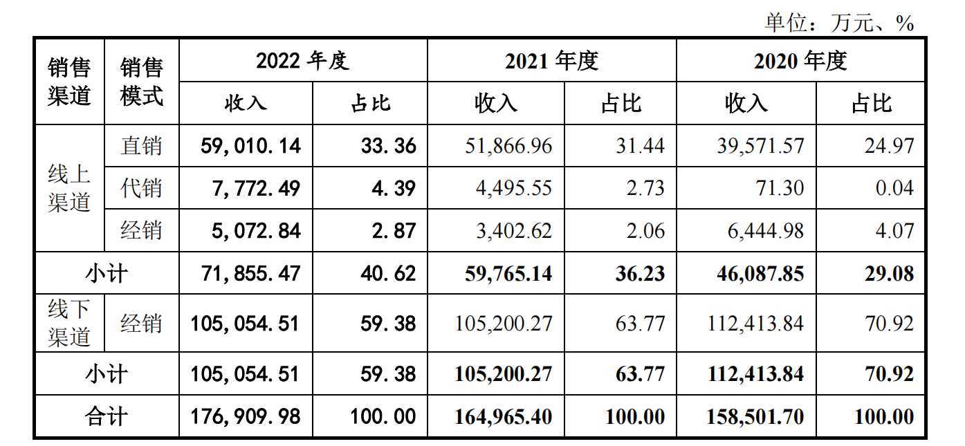 从销售模式来看,目前敷尔佳线上渠道分为直销、经销和代销三种模式,入驻了天猫、小红书、抖音、快手、拼多多等平台;线下则以经销模式为主,主要面向美容机构、连锁零售药店等终端渠道。尽管近年来一直大力铺设电商渠道,但线下销售仍为其主要方式。