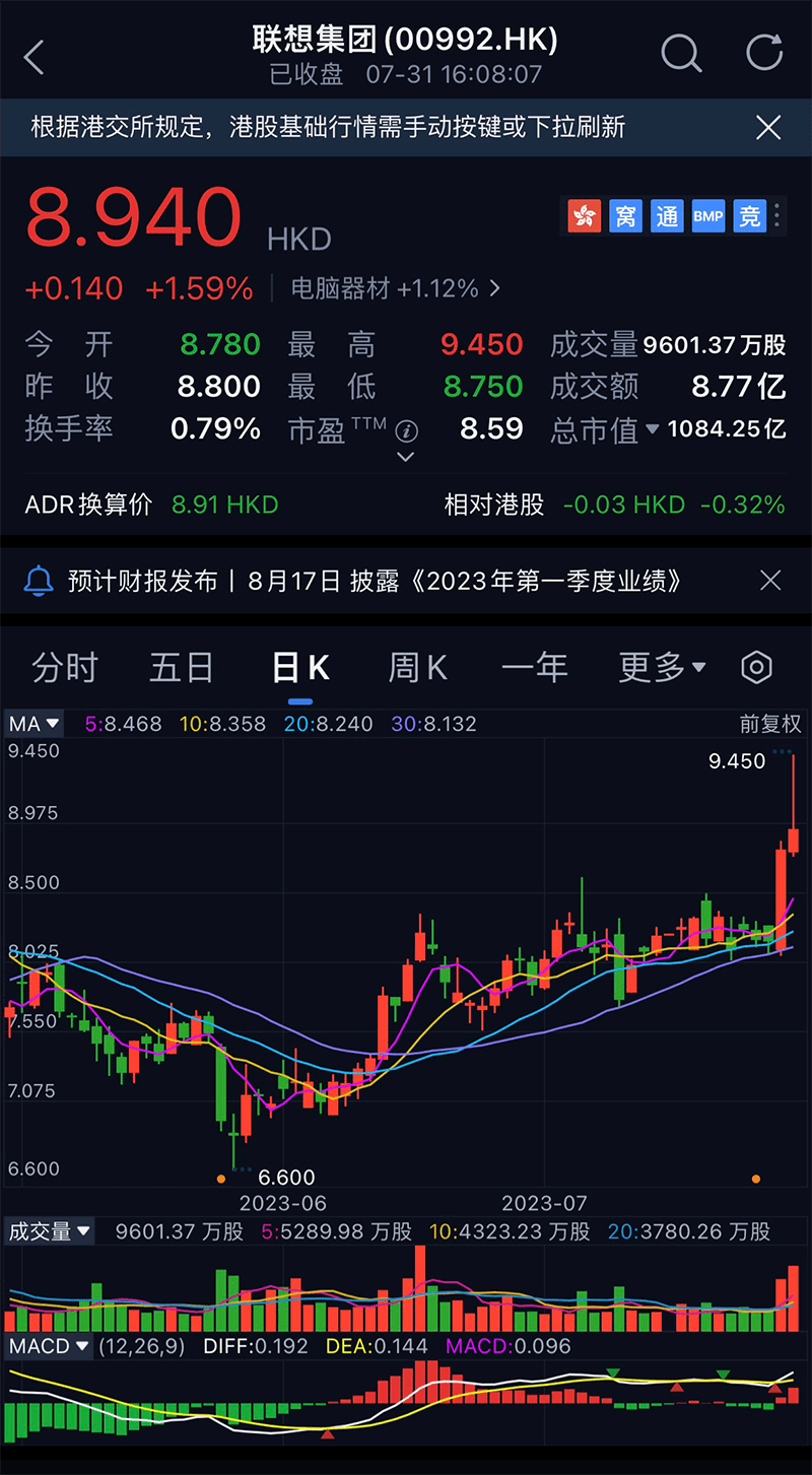 7月31日,联想集团盘中大涨超7%,最高达每股9.450元,为今年高点。就在几天前,7月28日,联想集团同样上涨超7%。投资机构认为,联想因计划推出AI笔记本电脑,以及发力AI服务器等将取得新增长点。