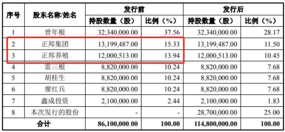 截至2022年末,正邦集团直接持有公司1320万股股份,占发行前总股本的15.33%;正邦养殖持有公司1200万股股份,占发行前总股本的13.94%,二者分列二三大股东,合计持股占比超过29%,仅次于增鑫科技实控人曾年根(持股比例37.56%)。