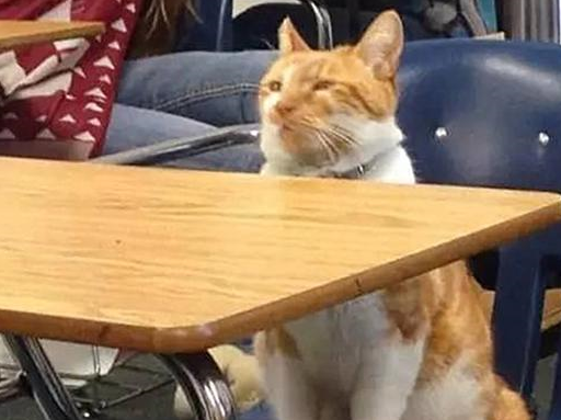 在国外的一所大学,流浪的橘猫每天都会混进教室,并且一本正经的听课,大家都说橘猫成为了一只名副其实的”学霸“猫。就是因为橘猫每天进出教室,看到大家都有学生证它的内心也是哭诉:”我橘猫乞求有姓名“于是它拥有了一张学生证!