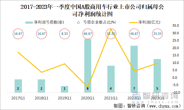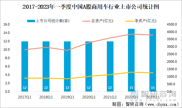 2017-2023年一季度中国A股商用车行业上市公司统计图