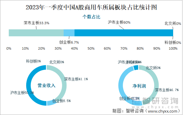 2023年一季度中国A股商用车所属板块占比统计图