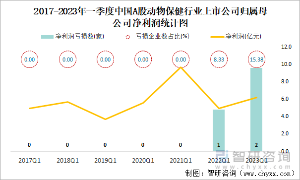 2017-2023年一季度中国A股动物保健行业上市公司统计图
