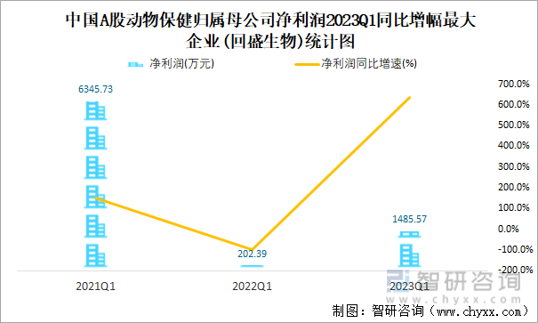 中国A股动物保健归属母公司净利润2023Q1同比增幅最大企业(回盛生物)统计图