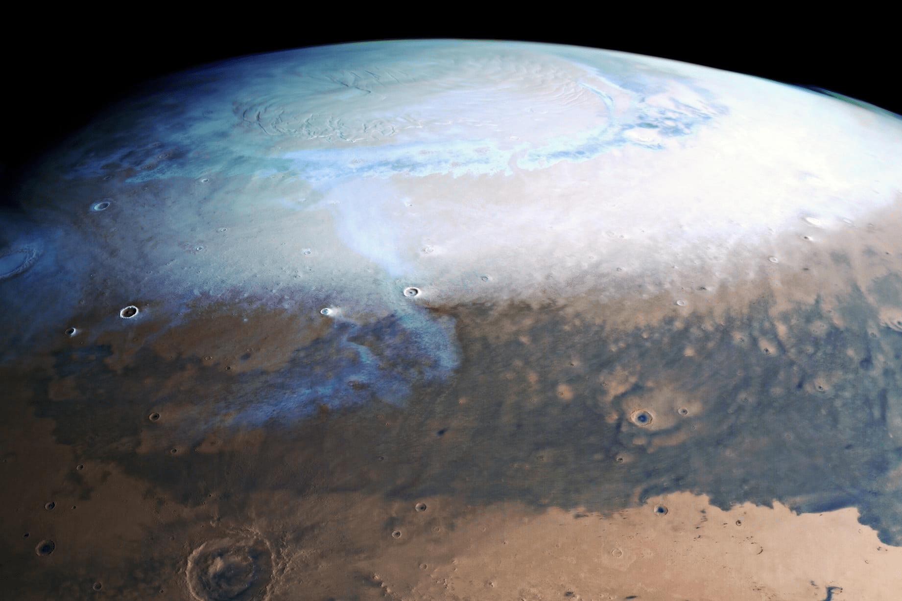 马斯克曾提出用核弹轰炸火星冰盖,用核爆炸的光和热融化它们,但这个想法太不切实际了,天文学家们给出的办法是在火星两极地区播撒黑色粉末物质,这些粉末附着在冰面上后会吸收更多的太阳热量并缓慢融化冰盖。