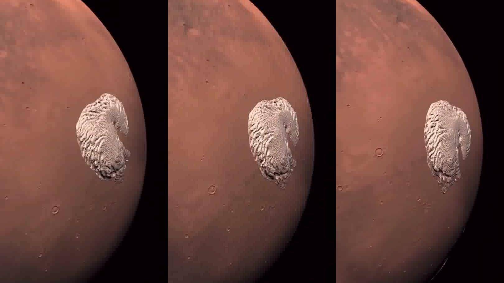 NASA认为这个计划能在几个世纪内融化所有固态冰,甚至黑色粉末也不需要从地球上开采,火星的两颗土豆状卫星本身就是太阳系内最黑的东西,把它们磨碎了洒在火星两极就能达成目的,并且可以的话还能再混上来自地球的藻类或者细菌,把它们全洒在火星上,等几百年后火星遍布液态水的同时,微生物和藻类也能吸收有害气体释放二氧化碳。