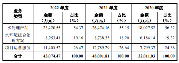 公司为水环境治理提供整体解决方案,主要产品及服务包括水处理产品、水环境综合治理方案及项目运营服务。