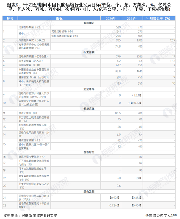 根据民航局在2022年1月发布的《“十四五”民用航空发展规划》,在2021-2025年间,我国民用航空运输行业的发展整体分为两大阶段:2021-2022年的“恢复期和积蓄期”以及2023-2025年的“增长期和释放期”。到2025年,我国民用航空运输行业将实现全方位高质量发展。
