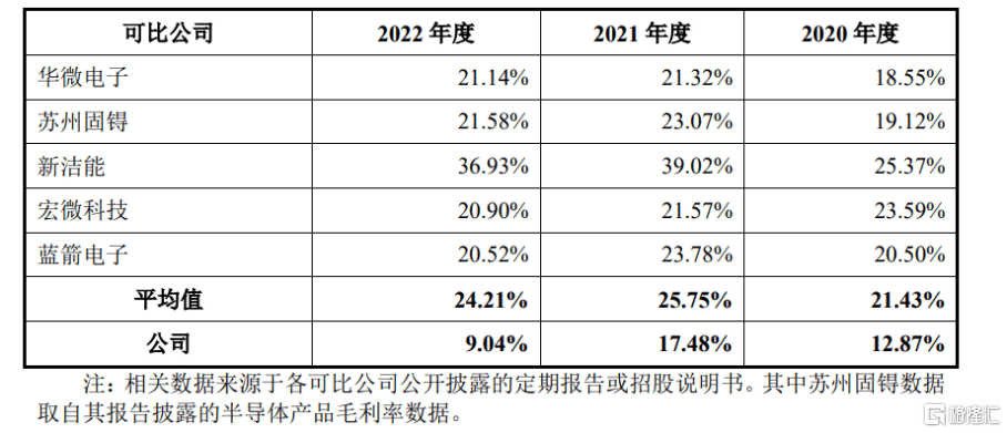 报告期内,华羿微电的综合毛利率分别为 12.87%、17.48%、9.04%,波动明显,明显低于可比公司。
